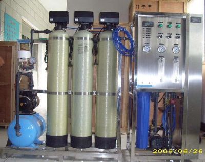经过处理过后自来水通过反渗透膜后可除去水中95%的各种物质,电导率由300μs.cm达到30μs.cm。反渗透膜的出水口处装有在线电导率仪,在线检测R.O水的产水情况。